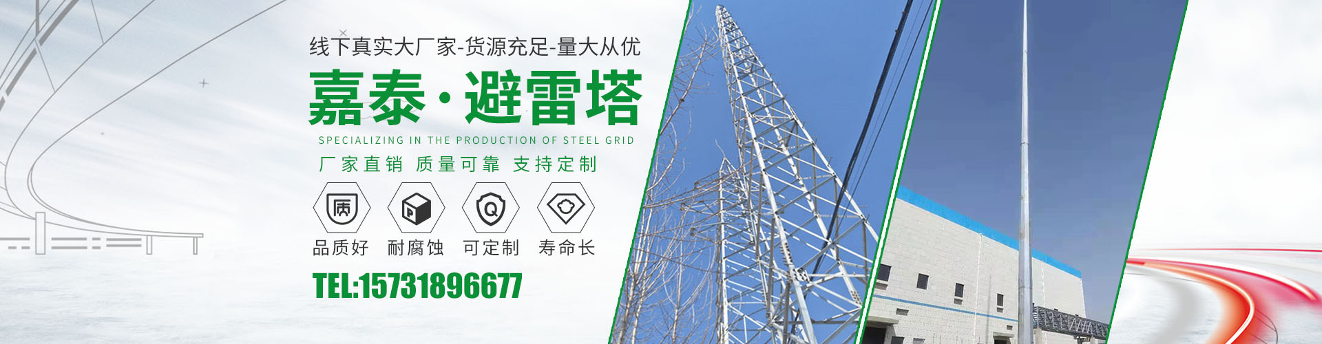 衡水嘉泰鋼結(jié)構(gòu)有限公司位于鐵塔制造之鄉(xiāng)-衡水市景縣廣川經(jīng)濟(jì)開(kāi)發(fā)區(qū),石德、京九鐵路交匯處,距北京、天津、石家莊、濟(jì)南均在2小 時(shí)交通圈內(nèi),交通便利。公司主要產(chǎn)品有:避雷塔、監(jiān)控塔、瞭望塔、消防訓(xùn)練塔、電力架構(gòu)、樓頂工藝塔、廣播電視塔、煙囪塔、測(cè)風(fēng)塔 、電力塔、單管塔、雷達(dá)塔、仿生樹(shù)塔、氣象觀測(cè)塔、路燈桿,一體化基站、ETC龍門架等,是一家集設(shè)計(jì),生產(chǎn),運(yùn)輸,安裝,維護(hù)為一體的廠家。主要服務(wù)于鐵塔公司、通信三大運(yùn)營(yíng)商、國(guó)防通訊,鐵路及森 ......